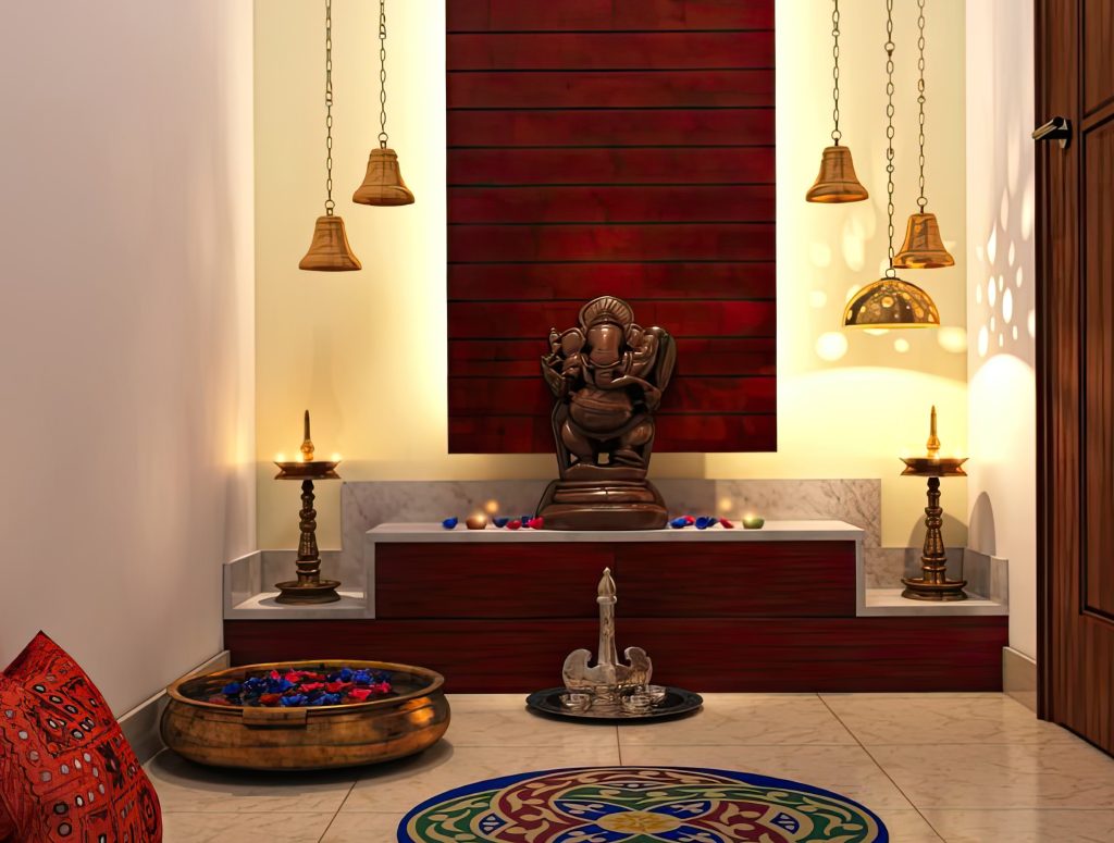 At Aaurum Craft, we understand the importance of a serene prayer space in your home, even when space is limited. Our custom-designed prayer units can seamlessly integrate into your living room, offering a peaceful and elegant corner for your daily rituals. Choose from a variety of designs, from compact wall-mounted units to beautifully crafted standalone structures, each designed to match the theme of your living room interiors. Our experts will help you select the perfect design, materials, and finish, ensuring your prayer unit is both functional and a symbol of tranquility in your home.